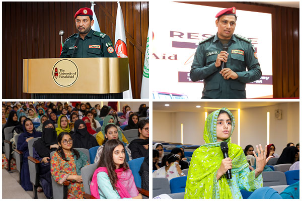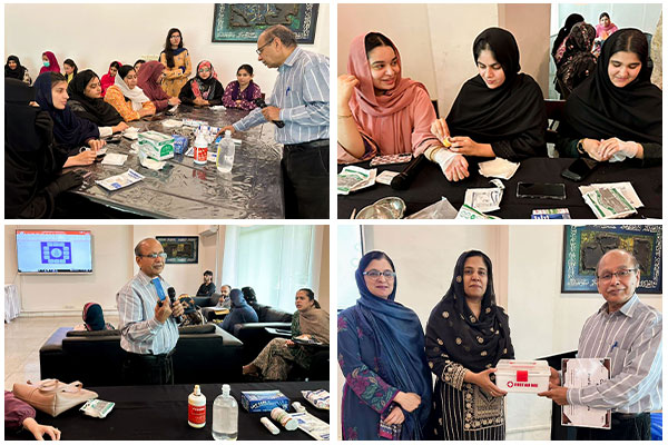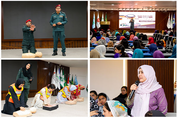 The session focused on essential life-saving skills, including CPR, bleeding control, and emergency response, combining expert instruction with hands-on practice. Certified Rescue 1122 trainers delivered lectures and practical demonstrations on CPR techniques, choking management, fracture handling, and pre-hospital emergency care.