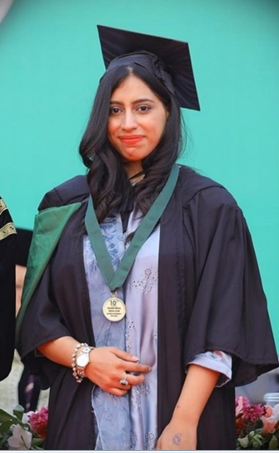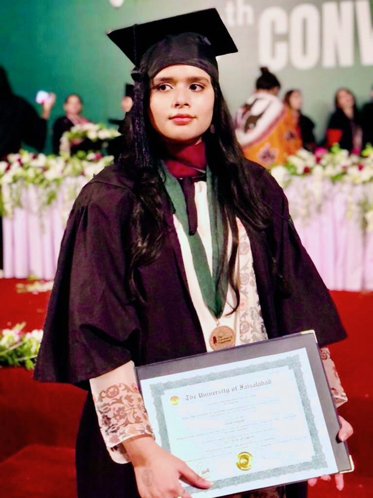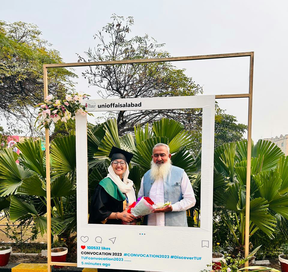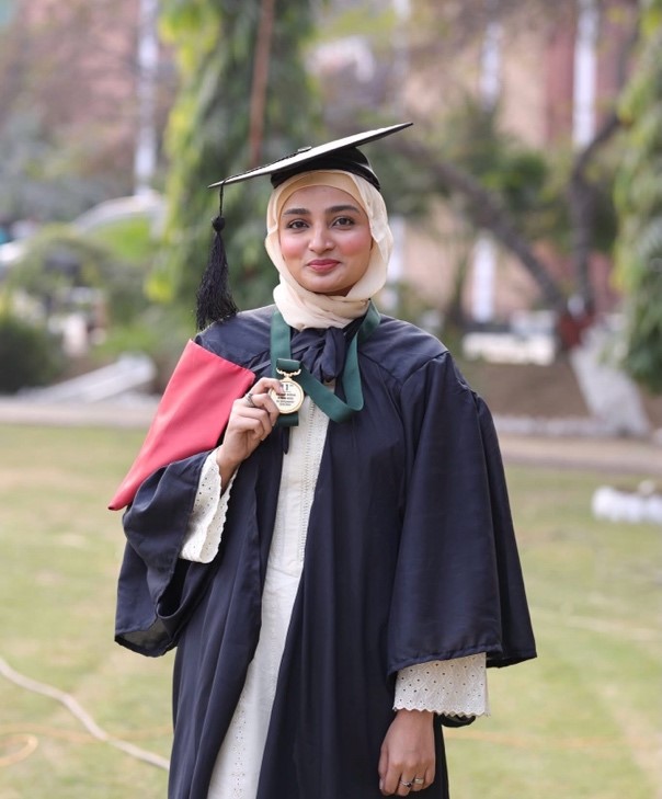 I am Faryal Iqbal, the Gold Medalist of the BS Optometry Batch 2019-2023. Currently, I am honored to work at Javed Eye Center, Faisalabad, where I contribute to relieving people’s suffering and enhancing their vision. This journey has been a testament to the blessings of Allah, the unwavering support of my parents, my dedicated efforts, and the invaluable guidance of my university, Optometry department, and esteemed teachers. My time at The University of Faisalabad (TUF) provided me with the knowledge and skills to excel in my field. The interactive teaching methods, real-world applications, and continuous support helped me grow both academically and professionally. I am passionate about using my expertise to make a meaningful difference in people’s lives, helping them overcome the challenges related to their vision. I express my heartfelt gratitude to Allah Almighty, my family, and everyone who has been part of my journey. I am proud to serve my community and aim to continue striving for excellence in the field of Optometry.