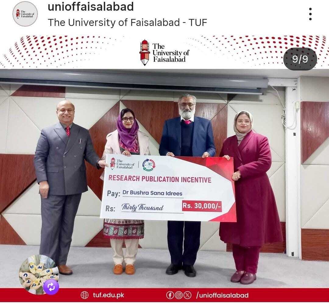 Dr Bushra Sana Idrees, Assistant Professor, Department of Physics, was awarded the Research Publication Incentive 2026 Award (Rs. 30,000) in recognition of her outstanding research contributi