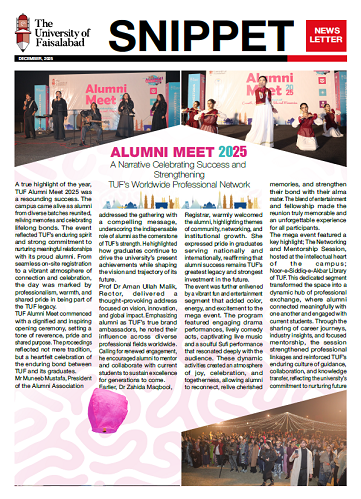 The Press and Publication Office at The University of Faisalabad publishes newsletter on quarterly basis, comprising of news from all the Schools and Departments, Societies Events and Activities, Conferences and Seminars which highlights the campus life.