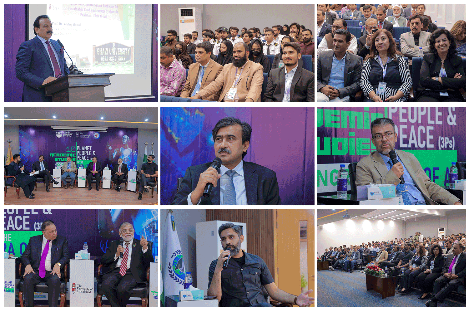 The event featured keynote speeches, academic paper presentations, and a panel discussion moderated by Mr. Sharjeel Yousaf (Lecturer, NBS), with distinguished panelists including Prof Dr Zulfiqar Ali (VC, UAF), Prof Dr Nadeem Bhatti (VC, Lahore Leads University), and Dr Habib Aslam Gaba (President, FCCI). The dialogue centered on leveraging AI for sustainable development and global peace.