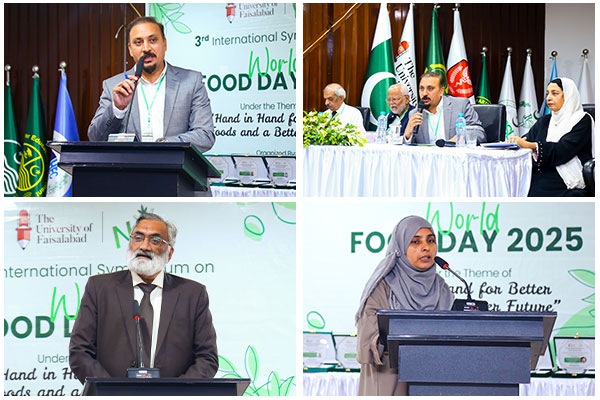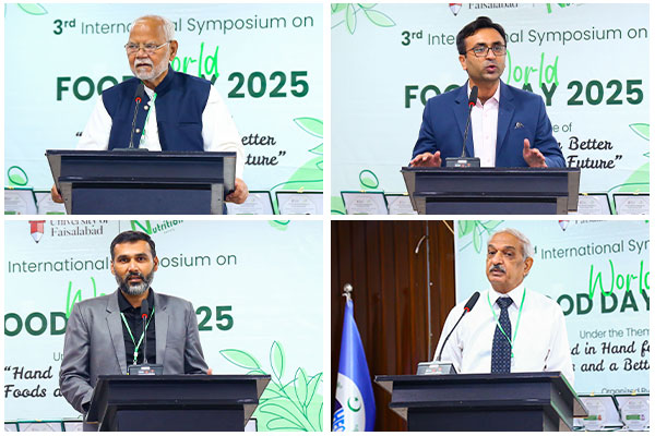 The symposium brought together an exceptional assembly of academic and industry leaders whose insights significantly enriched the discussions. Prof Dr Faqir Muhammad Anjum, the Chief Guest and CEO of the Islamic Food and Nutrition Council of America (IFANCA) and Pakistan Halal Apex Pvt. Ltd., delivered a keynote address emphasizing the importance of food technology, policy innovation, and halal certification in improving public health and industry standards across Pakistan. International contributors Prof Dr Aamir Shehzad from UniLaSalle, France, and Dr Munawar Abbas from APC Microbiome Ireland joined the event online, offering global perspectives on food system collaboration and microbiome science, respectively.