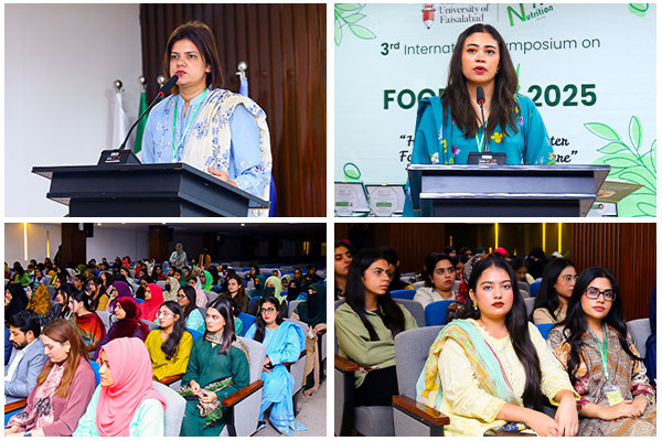 National scholars and professionals also played a central role in advancing the symposium’s dialogue. Dr. Nazir Ahmad, Chairperson, Department of Nutritional Sciences, GC University Faisalabad, introduced the symposium’s theme and stressed the significance of functional foods in disease prevention and long-term health. Dr Muhammad Kamran Khan, Associate Professor and ORIC Manager at GCU Faisalabad, provided insights into research commercialization and the need for academia-industry partnerships. Dr Abdul Momin from NUST Islamabad focused on sustainable dietary practices and their role in both public health and environmental preservation. Prof Dr Amna Sehar from NIFSAT, University of Agriculture Faisalabad, explored food system innovation and the integration of technology in nutrition science. Dr Mahwish from the University of Sargodha addressed the intersection of community nutrition, equity, and scientific advancement, while Dr Sakhawat Ali, an academic and research scholar, reflected on current challenges in nutritional sciences and opportunities for policy-driven reform.