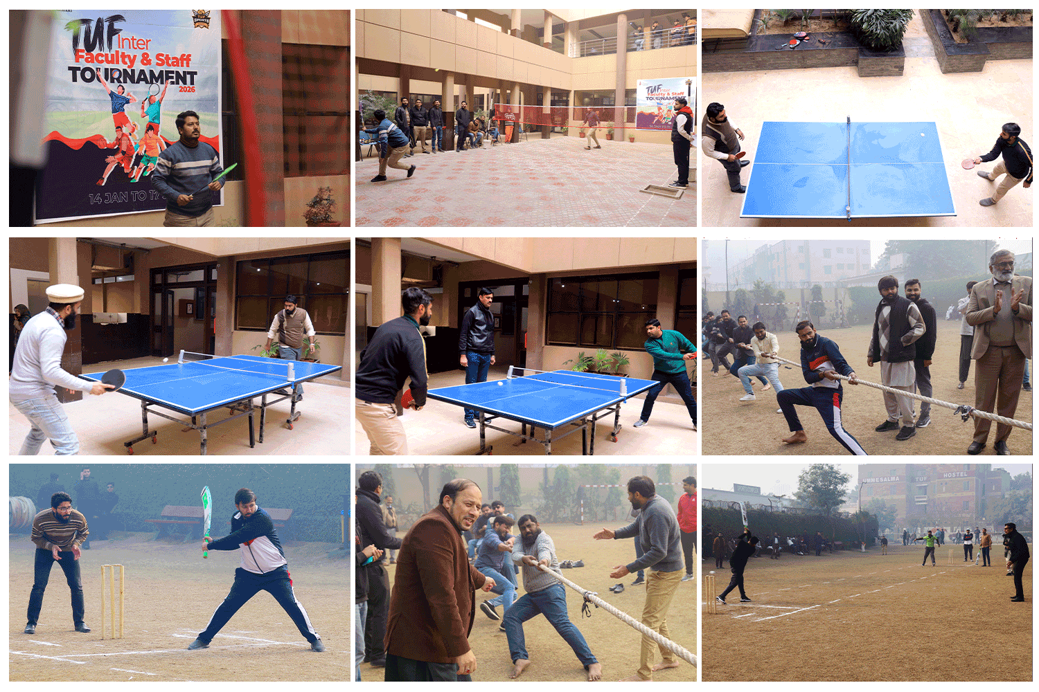 TUF Sports Department organized the Annual Faculty and Staff Sports Competition 2026, in which faculty members and administrative staff enthusiastically participated and thoroughly enjoyed the activities. The event aimed to motivate staff members and promote physical fitness, mental well-being, and team spirit.