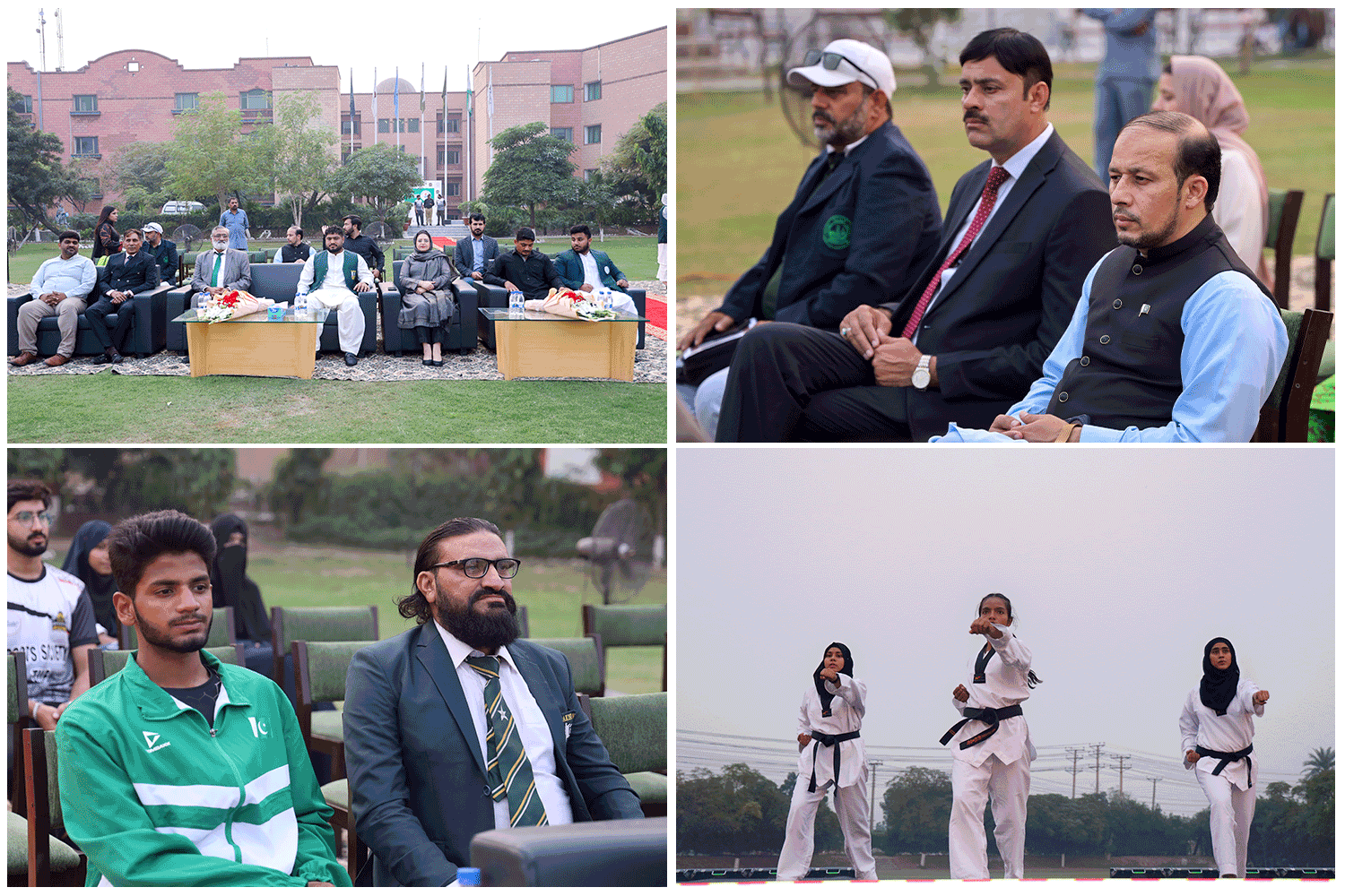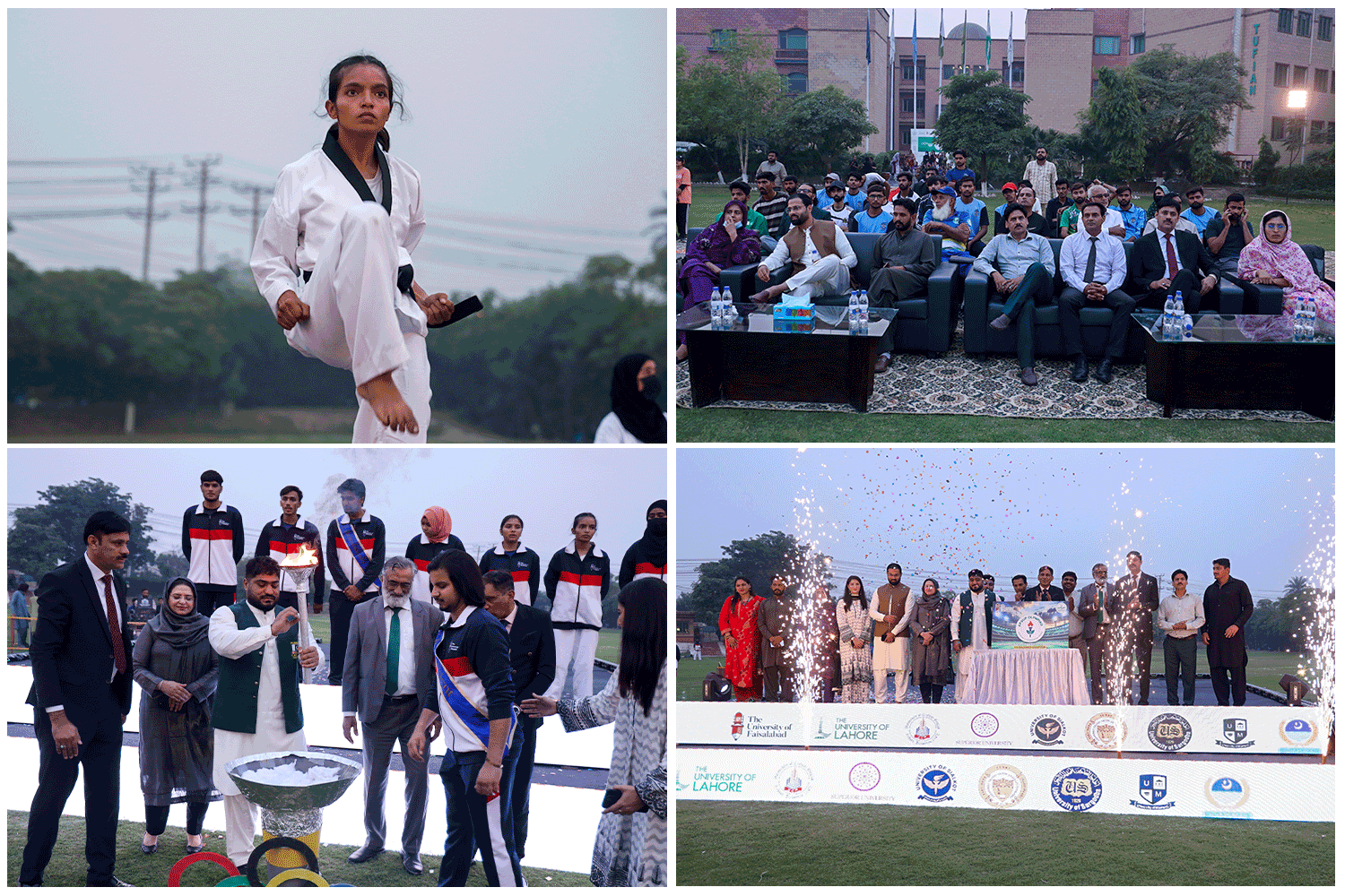 Representing APSUP’s vision of promoting youth engagement and healthy competition, the opening ceremony featured participating teams from University of Agriculture Faisalabad (UAF), Government College University Faisalabad (GCUF), Government College Women University Faisalabad (GCWUF), Government College Women University Sialkot, University of Sargodha, University of Mianwali and the University of Faisalabad. The APSUP Olympiad began with great enthusiasm and pride as the Rector, TUF administered the Oath of Sportsmanship to the student players. The ceremony began with an impressive team march-past, showcasing the enthusiasm and discipline of the young athletes. TUF talented players also presented an exciting Taekwondo Poomsae performance.