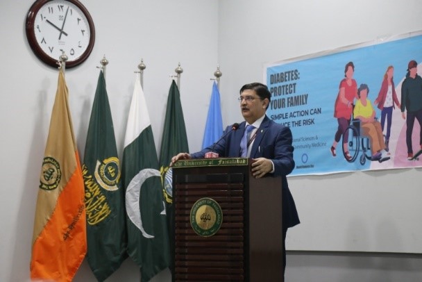 School Nutritional Sciences, TUF in collaboration with the Department of Community Medicine, UMDC organized an awareness seminar to mark the world diabetes day. Speaking on the occasion Prof Dr Zahid Masood highlighted the importance of theme “Families and Diabetes”. According to a recent study, there were 16% diabetics and 10% were Pre diabetics in Pakistan, he added Prof Dr Akmal Sharif labelled Diabetes as an epidemic.