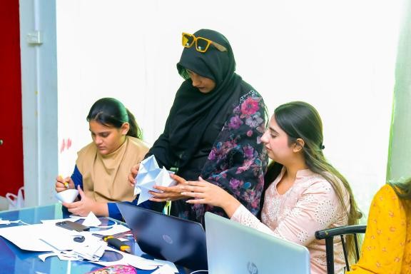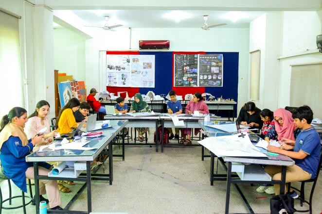The Department of Design & Interiors at The University of Faisalabad recently hosted a highly successful Design Thinking workshop in collaboration with Angels International College. The specialized event took place on May 6, 2025, and was convened by Miss Maryam Arshad. A select group of participating students received hands-on experience in essential design methodologies. Key activities focused on composition making strategies and architectural prototyping integration. Faculty and senior UAF students provided invaluable mentor-ship and assistance throughout the session. The workshop successfully enhanced the participants' understanding of design thinking and its application in practical design. Students gained valuable skills, fostering their creative and problem-solving abilities. This fruitful collaboration inspires young minds toward design innovation and strengthens inter-institutional ties.