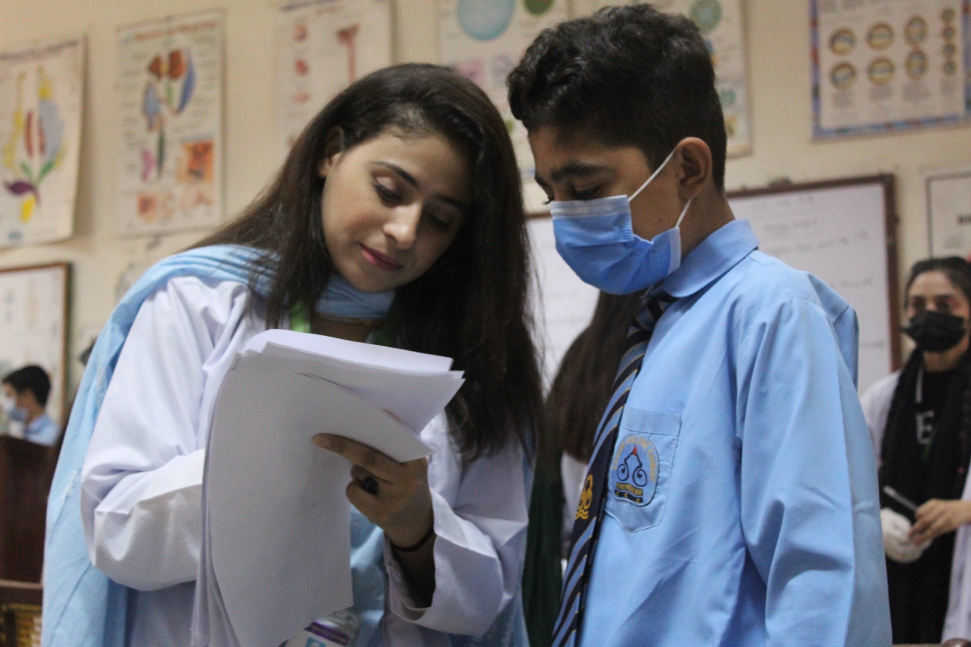 An Eye screening camp was conducted by students of BS Optometry 5th Semester at Chenab School Chiniot on November 2, 2021. More than 400 students were screened out at the School by Optometry students. All visual functions were evaluated and students were counseled for a detailed evaluation of their problem.