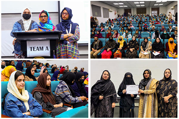 The event was graced by Dr. Humaira Khalil, Associate Professor, Department of Islamic Studies, as the Chief Guest. The program also featured a virtual guest lecture by Dr. Habib-ul-Allah Khan, Assistant Professor, International Islamic University Islamabad, who shared valuable scholarly insights on the importance of Arabic and Tajweed in understanding the Holy Qur’an. As part of the celebrations, a Tajweed Quiz Competition was arranged to encourage students’ academic participation. The competition was judged by Ms. Safia Jaffar, Lecturer, Department of Islamic Studies, and Dr Ammara Rehman, Assistant Professor, Department of Islamic Studies.