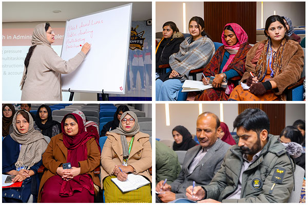 As part of the Staff Development Program series, the first session under the theme “Mental Health Awareness and Workplace Well-Being for Administrative Staff” focused on stress management. The ice-breaking session was facilitated by Dr. Zahida Maqbool, Registrar, TUF, and Dr. Nabeela Rasheed, Clinical Psychologist.