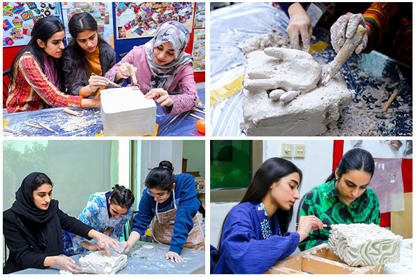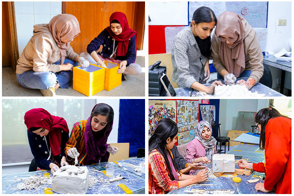 The Department of Design and Interiors hosted an intensive Plaster of Paris (POP) sculpture workshop on December 11, 2024. Supervised by Ms. Nouma Irfan and Ms. Jaweria Shabbir, the event focused on subtractive carving techniques. Bachelor of Interior Design students explored three-dimensional creative expression and functional form development. The workshop challenged participants to research, brainstorm, and execute concepts inspired by architectural and natural elements. Students skillfully utilized carving tools and finishing techniques to manipulate material and texture. The designs emphasized creativity, balance, and meticulous attention to detail. This successful hands-on experience enhanced technical mastery of POP and deepened students’ understanding of structural integrity.