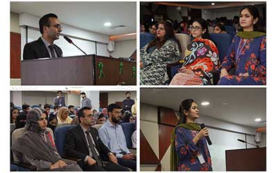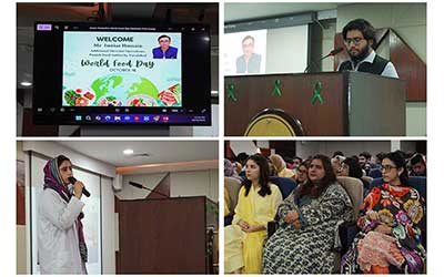 Mr Imtiaz Hussain, Additional Director Operations, Punjab Food Authority — “Awareness of Hunger and PFA’s Action Plan for Food Security in Punjab.” He highlighted PFA’s initiatives in enforcing food safety laws and addressing hunger through regulation and public awareness. Ms Tayyaba Kanwal, Nutritionist — “Hand in Hand for Better Food and a Better Future.” Her talk emphasized the importance of nutrition education and community collaboration for sustainable health outcomes. Ms Sana Mirza, Lecturer — “Bridging the Gap Between Food Production and Hunger.” She discussed the challenges of equitable food distribution and the urgent need to ensure access to nutritious food for all. The workshop aligned with several United Nations Sustainable Development Goals (SDGs), including: Zero Hunger, Good Health and Well-being, Quality Education, and Responsible Consumption and Production.