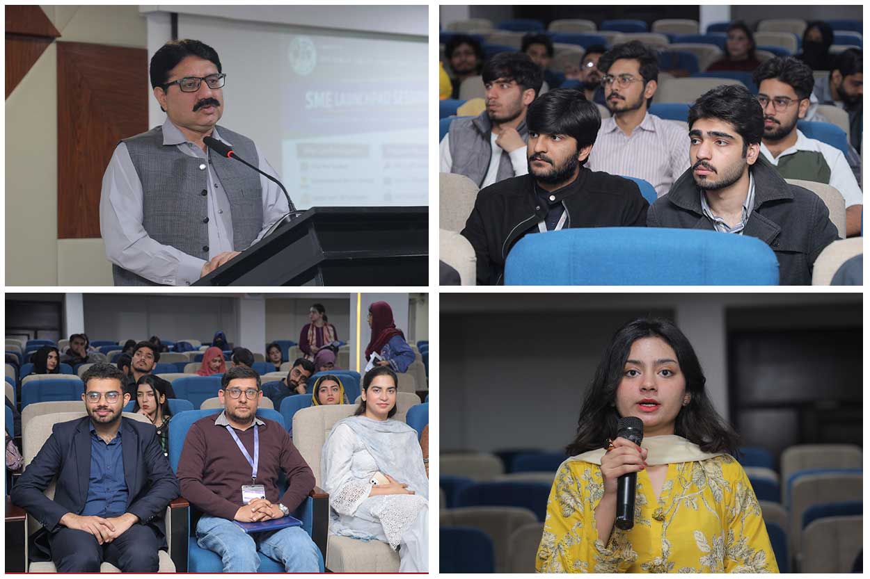 In a collaborative effort with the State Bank of Pakistan (SBP), TUF conducted a two-day SME Launchpad Session, engaging students and budding entrepreneurs in a dynamic and enriching learning experience. Day 1 focused on the economic importance of SMEs and government-led initiatives to promote entrepreneurship. The session began with a welcome address by Prof Dr Aman Ullah Malik, Rector of The University of Faisalabad, followed by key insights from Ms Fouzia Aslam, Chief Manager, SBP BSC Faisalabad, on SBP’s role in strengthening Pakistan’s SME sector. Expert sessions included: