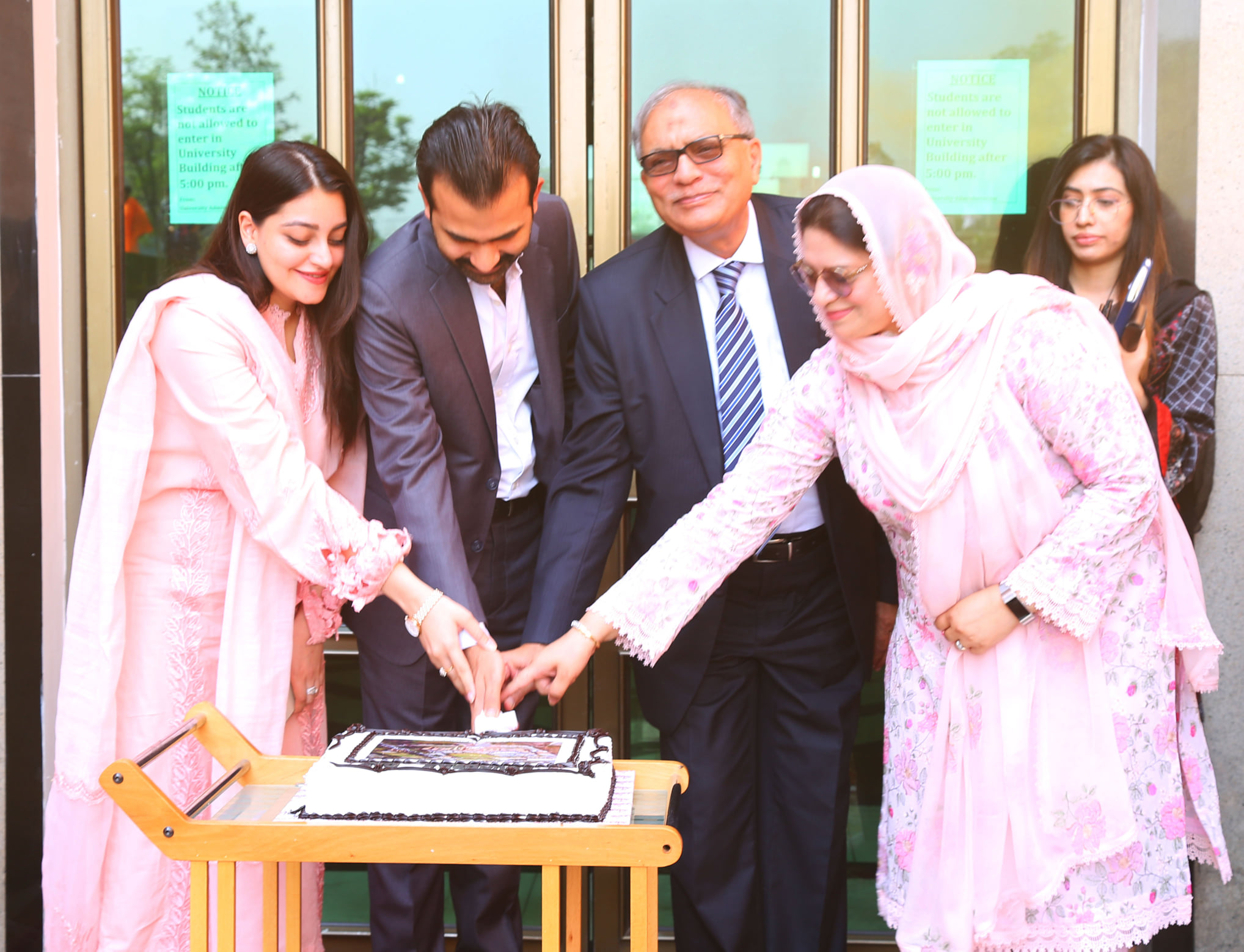 Mr Muhammad Haider Amin, Chairman Board of Governors, TUF, Prof (Meritorious) Dr Muhammad Khaleeq-ur-Rahman, Rector, Ms Zahida Maqbool, Additional Registrar, Heads of Departments, faculty members and large number of students were present in cake cutting ceremony to celebrate the day.