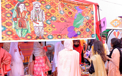 TUFians warmly welcomed guests, faculty members, and esteemed dignitaries, bedecked in traditional attire that represented the vibrant hues of Punjab, Sindh, Baluchistan, KPK, Gilgit, and Kashmir. Each department transformed into a cultural haven, showcasing the diverse heritage of Pakistan through folkloric displays and tantalizing desi cuisine.