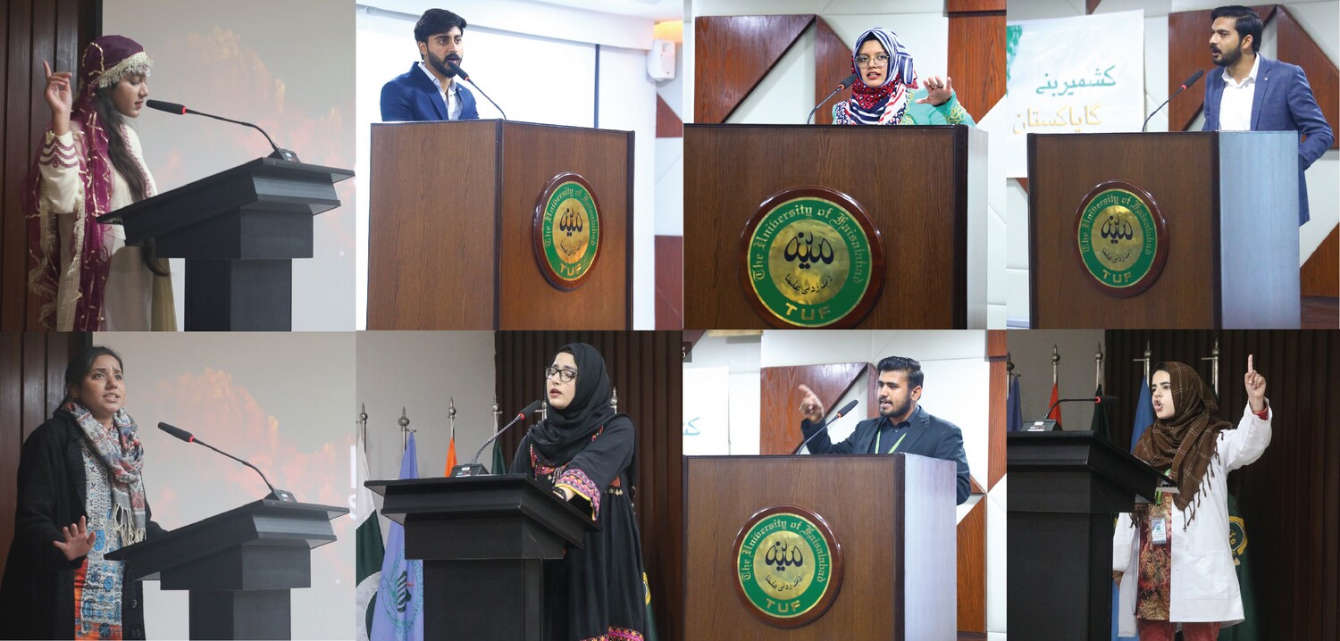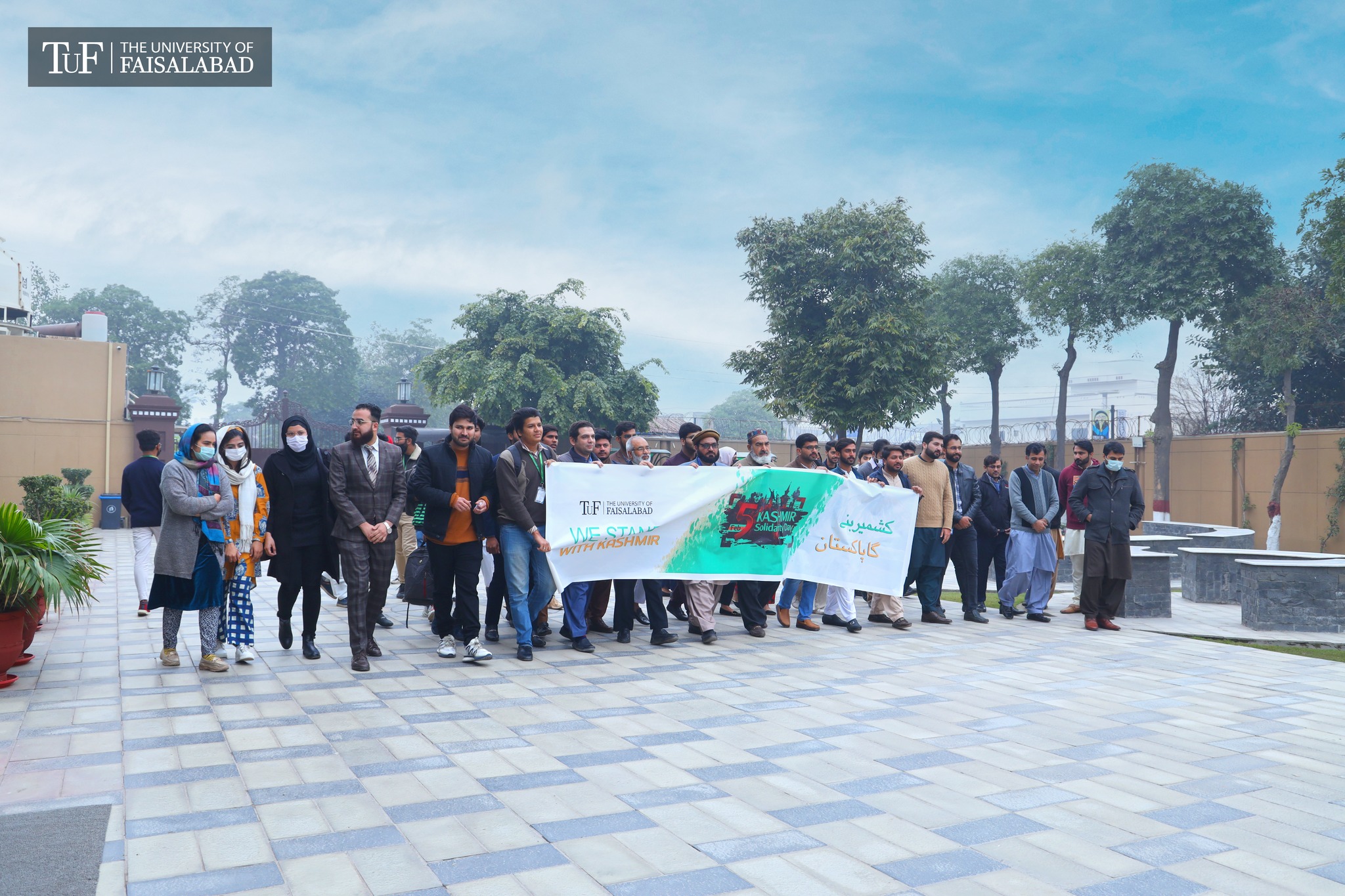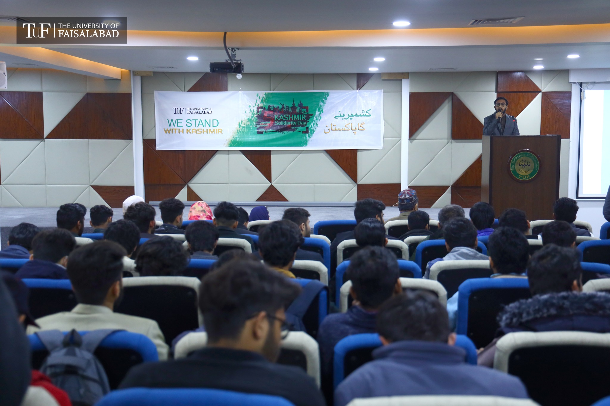 “Kashmir Solidarity Day” was observed in The University of Faisalabad. The Dramatic Society and Literary Society, TUF organized documentary competition, speeches, tableaus and poetry narration, actively participated by the students from various departments of the University.