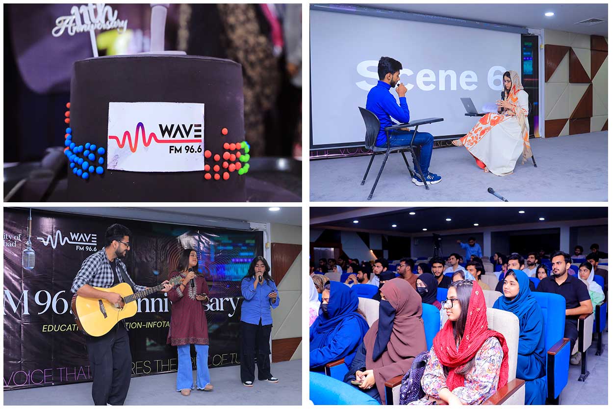 The University of Faisalabad’s radio station, Wave FM 96.6, marked its 11th anniversary with a grand ceremony held at the university campus. The anniversary celebration was attended by Prof Dr Amanullah Malik, Rector, TUF, and Dr Zahida Maqbool, Registrar, TUF, while the Chief Guest of the ceremony was Director Information, Malik Maqbool Ahmed. The celebration featured skits and musical performances by the students of The University of Faisalabad, which were warmly appreciated by the audience.