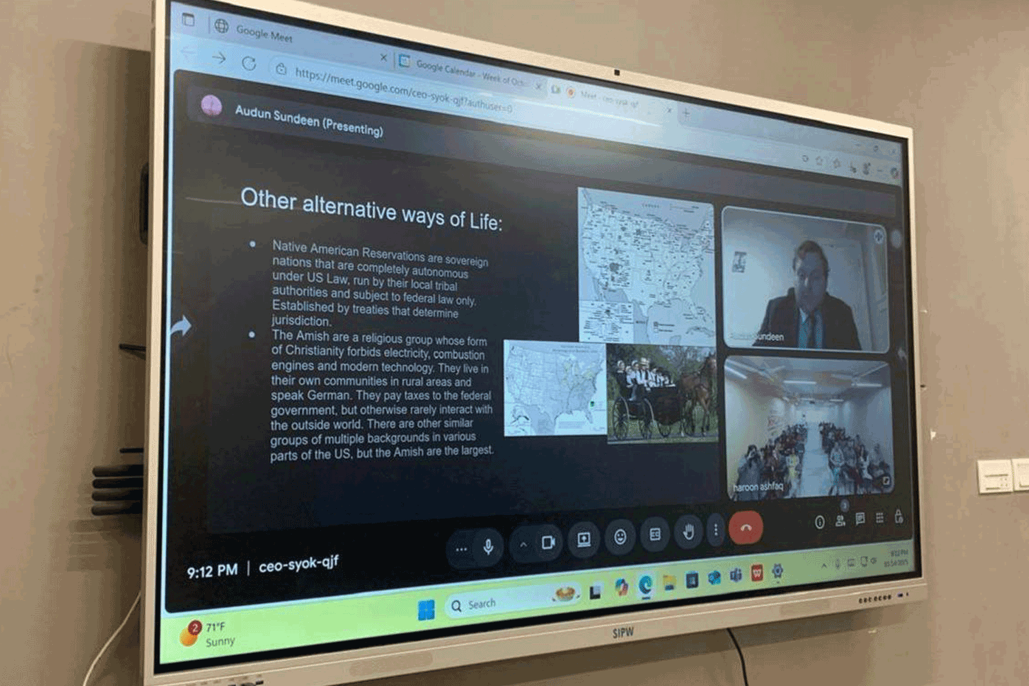 The Department of International Relations at TUF, under the leadership of Prof Dr M Ashfaq, Dean, Faculty of Management Studies, organized an insightful webinar on “Urban vs. Rural Divides: Societal Stratification, Cultural Shifts, and Their Influence on American Economic and Foreign Policy.” The session featured Mr Audun Sundeen, an international expert from USA who shared valuable perspectives on the deep-rooted social, cultural, and economic divisions shaping modern America. He highlighted how these internal dynamics influence the country’s domestic priorities and global policy decisions.