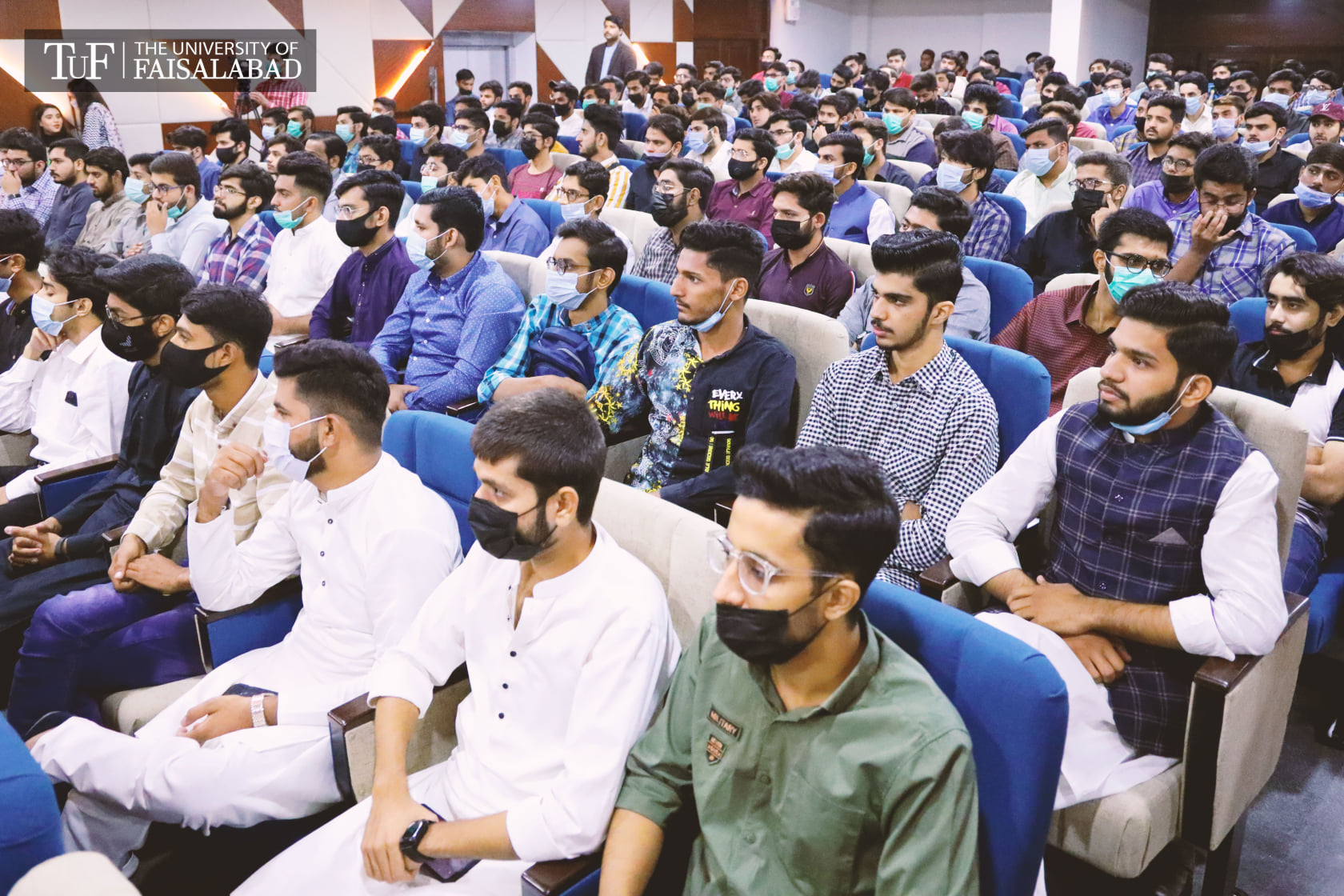 Welcome and Orientation Program for Fresh Entrants Orientation and the welcome program was conducted for the fresh entrants of undergraduate programs Fall 2021 at The University of Faisalabad. Prof (Meritorious) Dr Muhammad Khaleeq-ur-Rahman, Rector TUF Ms Zahida Maqbool, Additional Registrar, Heads and coordinators of Departments welcomed the new students and shared their valuable views.