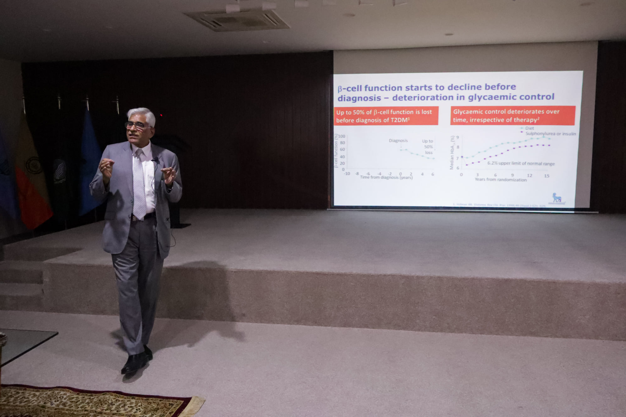 Prof Dr Mirza Akmal Shareef delivering lecture on Diabetes