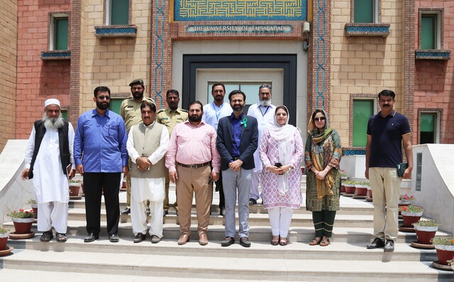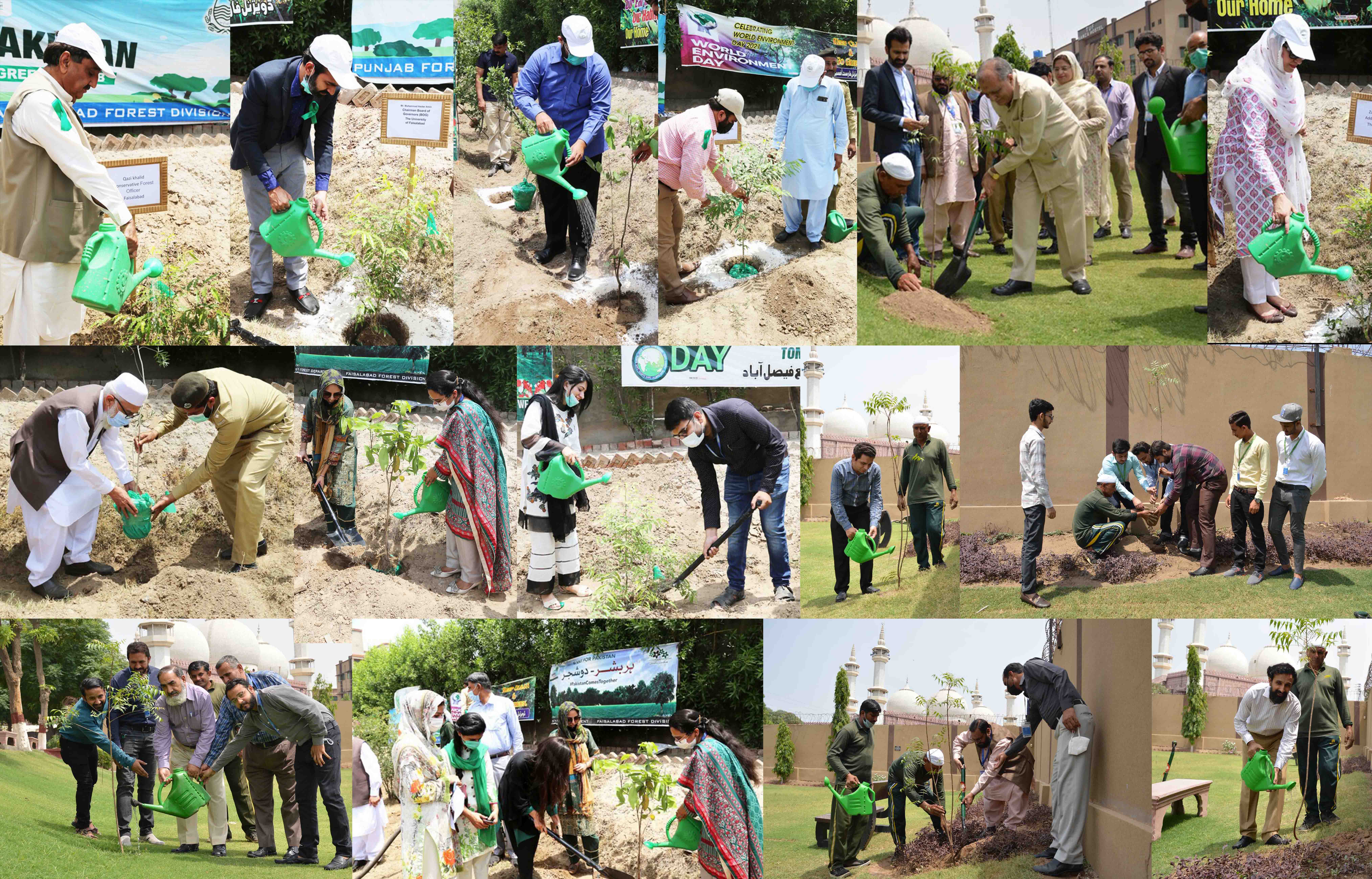 Mr Qazi Khalid Mehmood, Conservator, Forest Department Punjab,Mr Muhammad Haider Amin, Chairman BoG, Prof Dr Muhammad Khaleeq ur Rehman, Rector and Ms Zahida Maqbool, Additional Registrar and others planting saplings in the University lawns