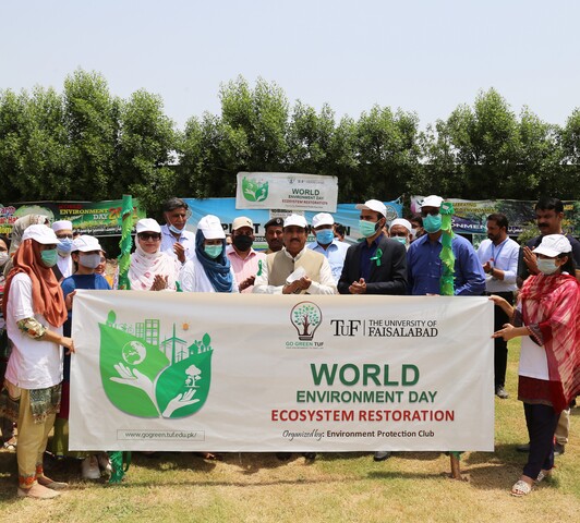 An event to mark the day was organized by TUF Environment Protection Club and TUF Green Club in The University of Faisalabad. Mr Qazi Khalid Mehmood, Conservator, Forest Department Punjab was the chief guest. Mr Wajihuddin Ahmed, Divisional Forest Officer, Mr Muhammad Ali Butt, Divisional Forest Officer Extension Faisalabad and Mirza Sabir Hussain, Sub Divisional Forest Officer were also present. Mr Muhammad Haider Amin, Chairman BoG TUF, Prof (Meritorious) Dr Khaleeq ur Rehman, Rector, Ms Zahida Maqbool, Additional Registrar, guests from Forest Department, faculty members and students planted saplings in girls hostel and University lawns. An awareness walk was also conducted to mark the day, actively participated by faculty and members of Environment Protection Club and TUF Green Club.