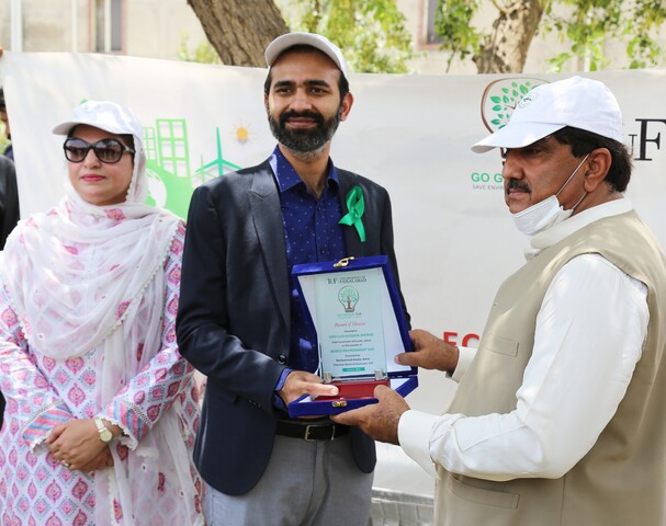 Mr Muhammad Haider Amin, Chairman BoG, TUF, Mr Qazi Khalid Mehmood, Conservator, Forest Department Punjab, Ms Zahida Maqbool Additional Registrar and others during awareness walk on World Environment Day