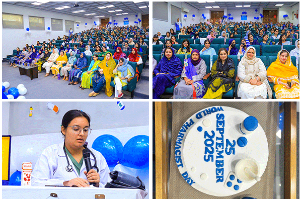 The event was graced by the presence of Dr. Sadia Raffique, Head of Department, along with Dr. Sana Shahzad, Coordinator; Assistant Professor Dr. Nyla Ajaz; Assistant Professor Dr. Sana Javed and other esteemed faculty members who actively participated in the celebration. The event concluded on a joyful note with a cake-cutting ceremony, symbolizing unity and dedication to the noble profession of pharmacy.